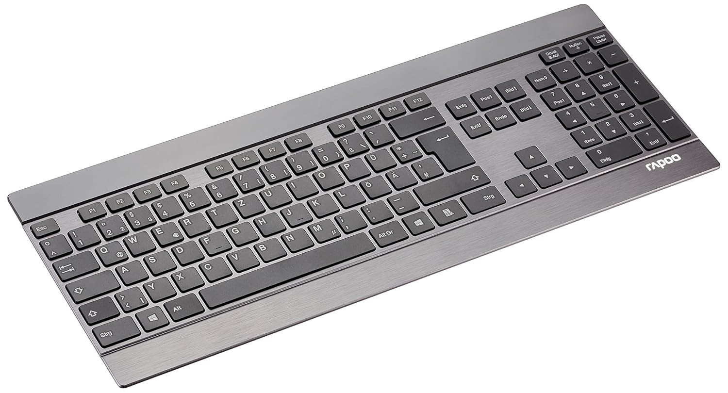 Rapoo bietet hochwertige Edelstahl/Aluminium-Tastaturen und “Bedienmäuse” mit Funk. Ganz besonders angenehm für den Einsatz an einem Windows-Tablet ist der Mini-USB 🔌 Stecker. Der von Rapoo entwickelte 5-GHz-Standard vermeidet Störungen durch andere drahtlose Geräte. Es bietet Ihnen eine Reichweite von bis zu 10 m und eine Abdeckung von 360 ° und das mit nur einem sehr geringem Stromverbrauch. Eine innovative Idee ist sicher die mit besonderen Funktionen individuell